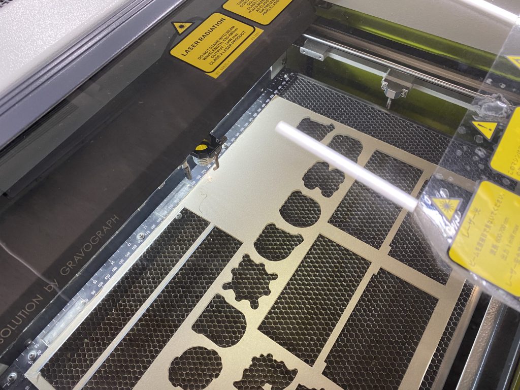 まずはアクリルの板をデータのカットラインに合わせてカットしていきます。