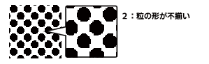 トーンを貼った後にリサイズしたり、アンチエイリアスのかかったトーンをモノクロ2階調化したりすると粒の形が崩れてしまいます。