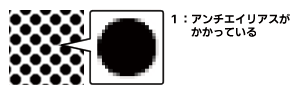 キャンバスのカラーモードがモノクロ二階調"以外"(CMYK・RGB・グレースケール)でトーンを使用した場合、自動的にアンチエイリアスがかかってしまう場合があります。