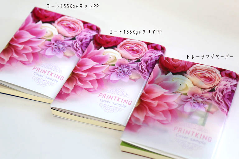 ラインナップはそのまま、コート135Kg+クリアPPまたはマットPP(無料)・トレーシングペーパー84Kg(有料)の3種類から選べます。