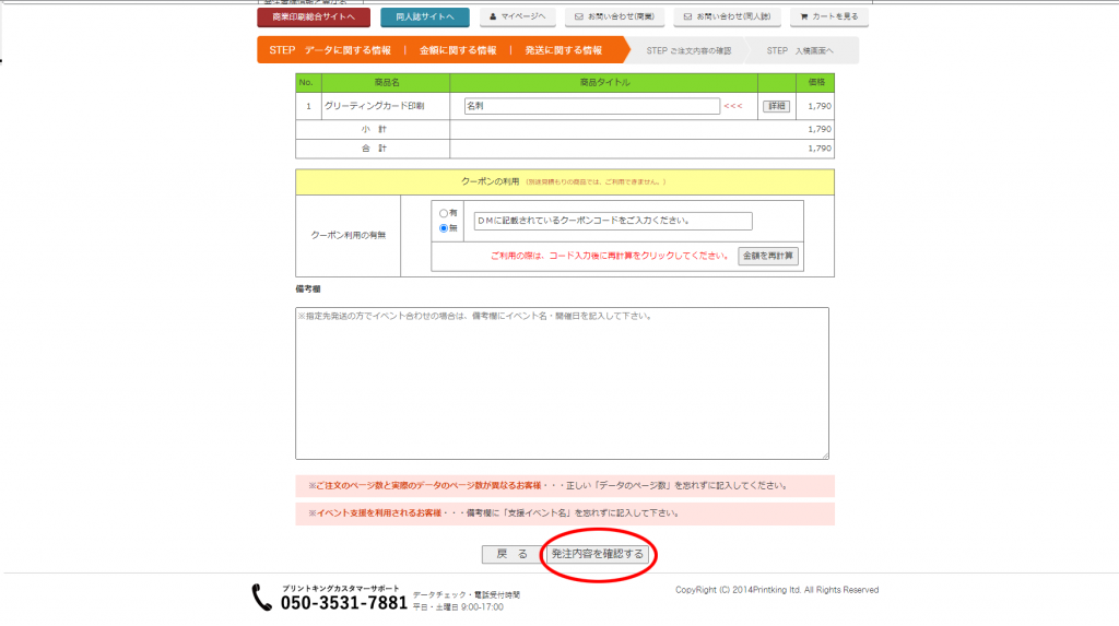 利用規約に同意すると発注画面に進むことができます。