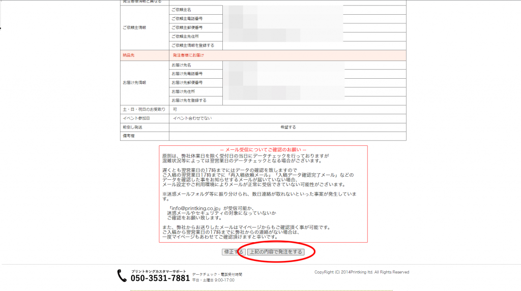 金額についてもここで確認できます。最後に今までの情報を再確認してから注文が確定します。