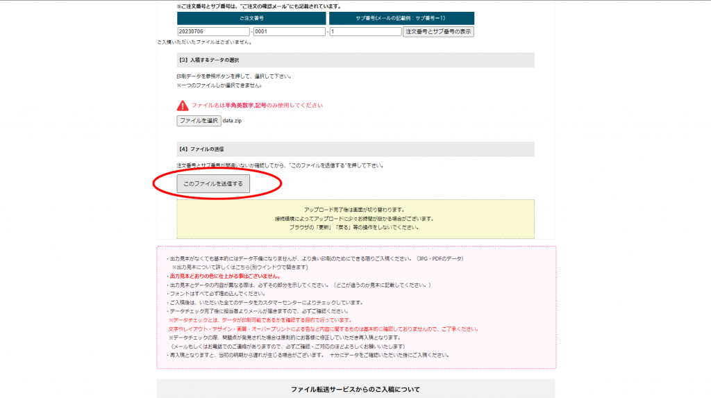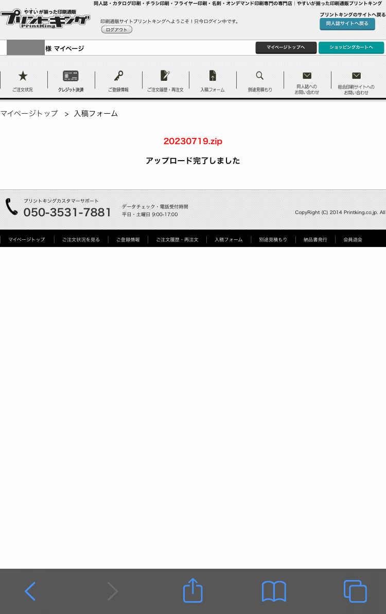 ファイルを送信して入稿は完了です。