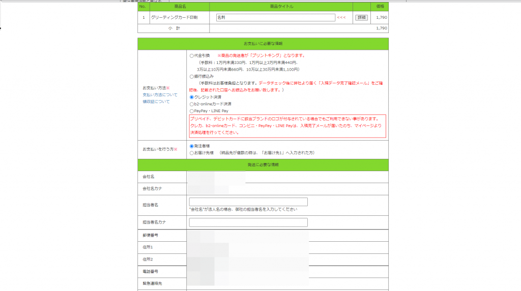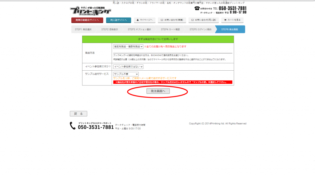 利用規約に同意すると発注画面に進むことができます。