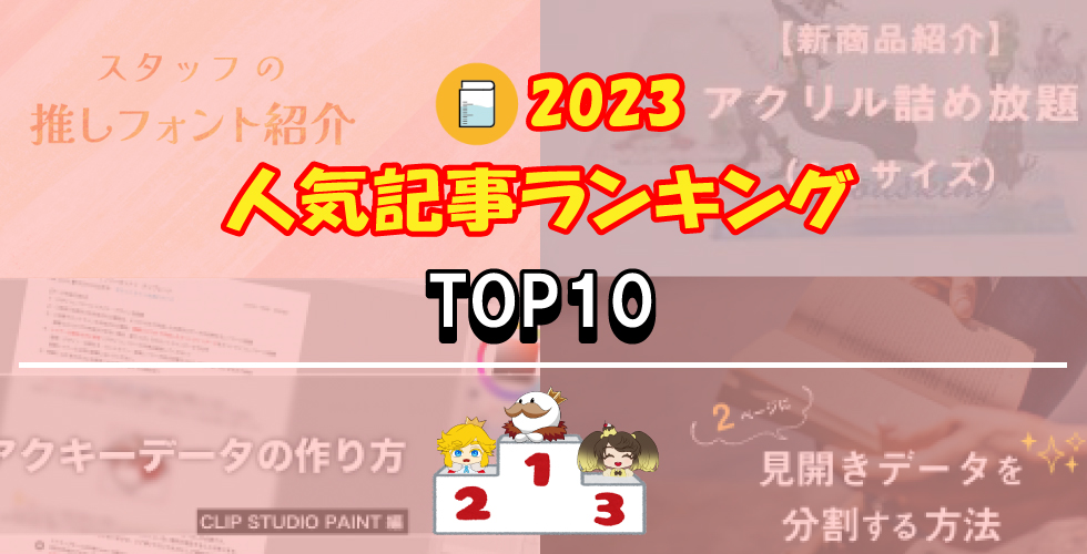 スタッフコラム 【年度末 特別企画】p-lab 2023年度 一番読まれた記事BEST10 年度の切り替わりとともに当ブログp-labも開始して約5年。 同人誌やアクリルグッズ作成のためのお役立ち情報、弊社サービス「プリントキング」「グッズキング」の情... 2024年3月29日 プリンとキング