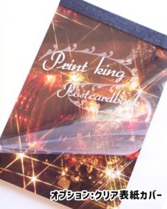 メモ帳やポストカードブック注文時にクリア表紙カバー(透明フィルム)オプションを選択することで、表紙の上に厚さ約0.2mmの透明なクリアカバーを取り付けることができます。