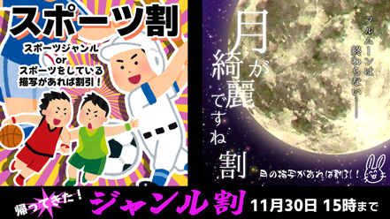 「スポーツ割(復刻)」・「月が綺麗ですね割」2種同時開催のキャンペーンです。