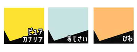 遊び紙ラインナップのうち、色上質紙のピュアカナリア、あじさい、びわが対象になります
