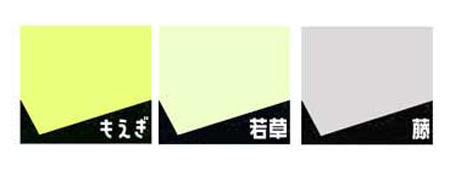 遊び紙ラインナップのうち、色上質紙のもえぎ、若草、藤、が対象になります