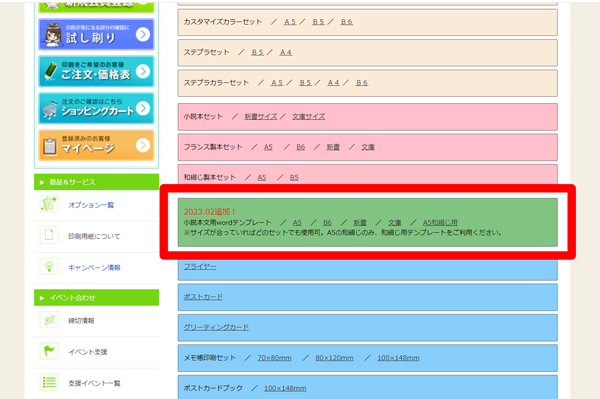 今回は例として、A5サイズのテンプレートをダウンロードしていきます。