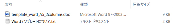 その他のサイズの仕様についても、「wordテンプレートについて.txt」で確認できますので、