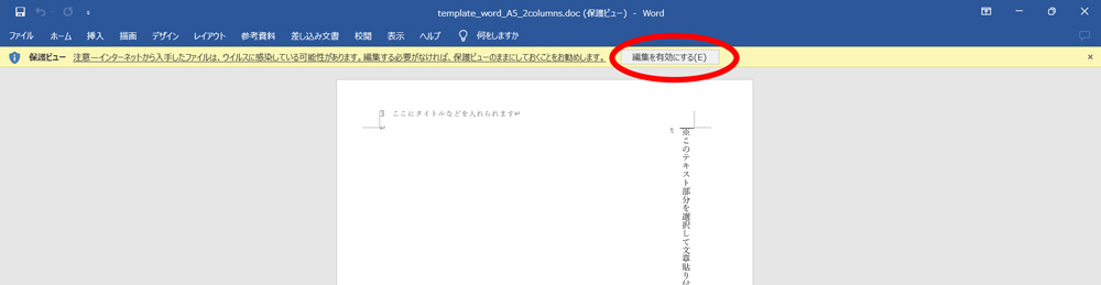 実際の原稿を作成する前に、テンプレートの形式がどうなっているかについて一度確認しておきましょう